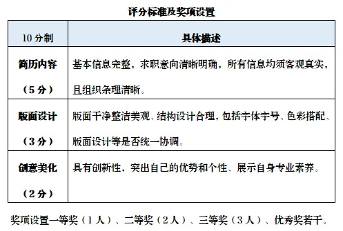 4.参赛作品需版面美观,篇幅合理,整洁大方;要求基本信息完整,求职意向清晰明确,所有信息均须客观真实,且组织条理清晰;行文规范,符合书面用语规则。