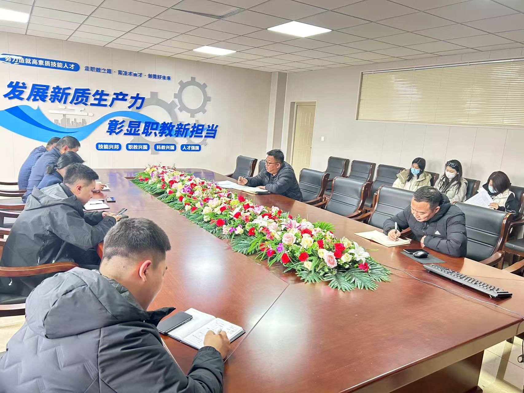 2025年3月17日下午1点,吉林职业技师学院在4教208会议室召2025年就业工作推进会。学院党总支书记臧连兴、学生处处长曲大鹏、集团就业处科长肖东飞、各系部主任、教务处负责人以及相关辅导员参加了会议。