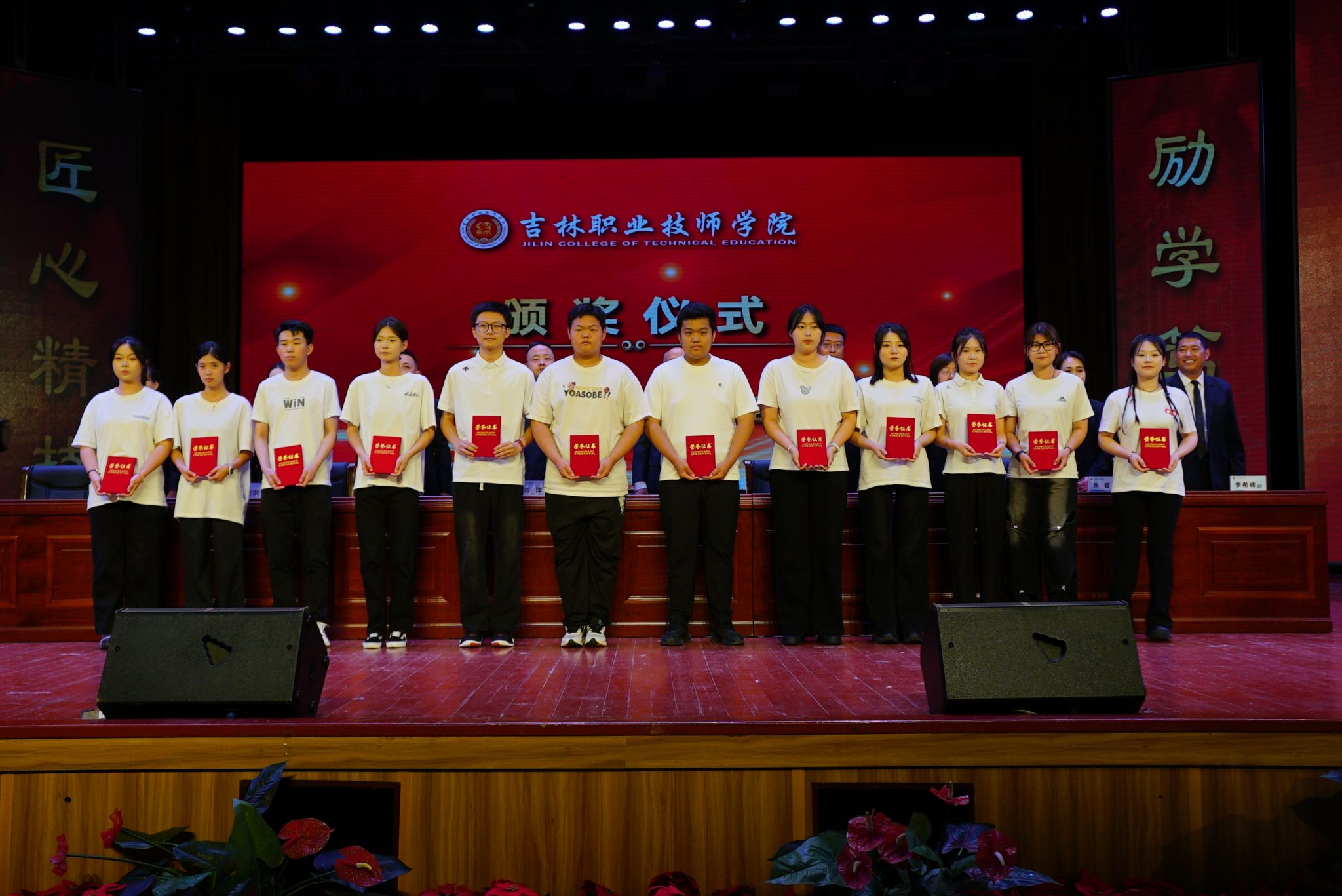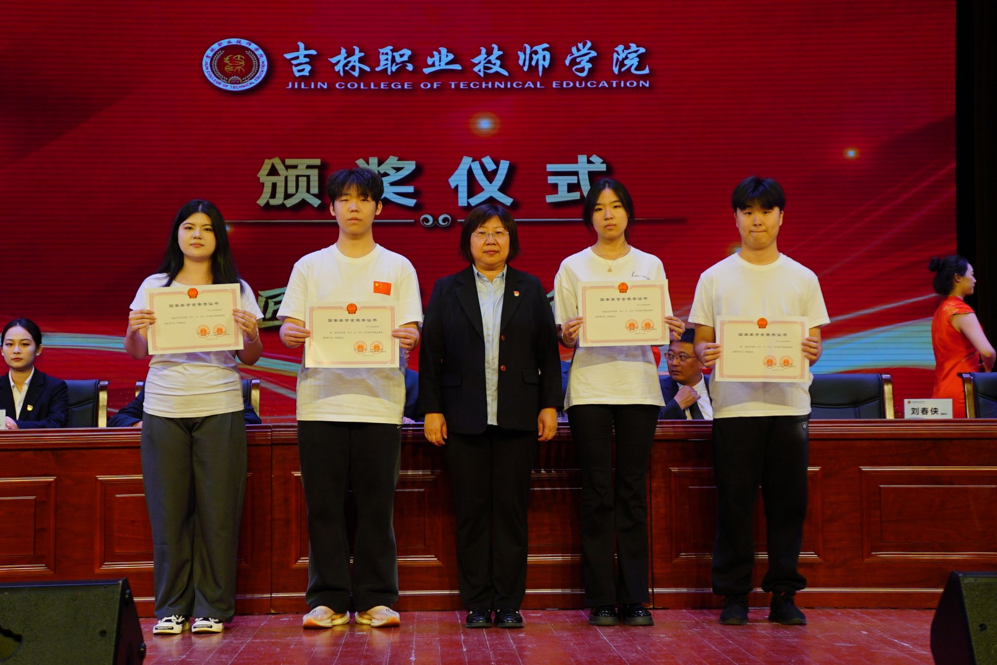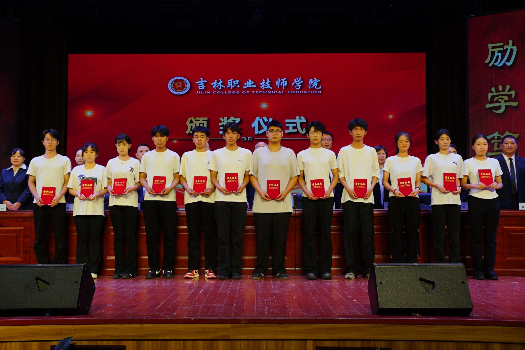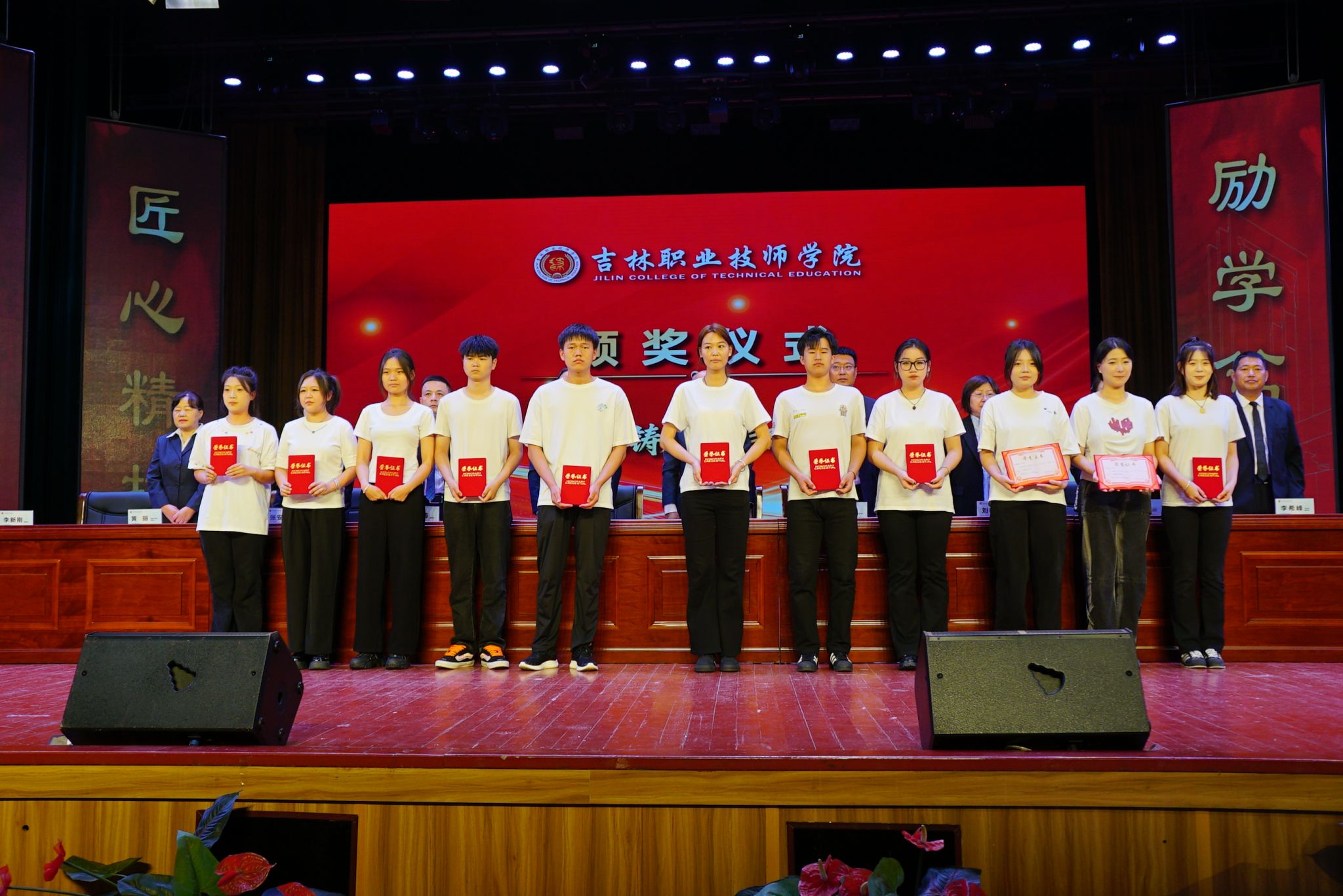 与会领导为“校级奖学金”学生代表颁奖
