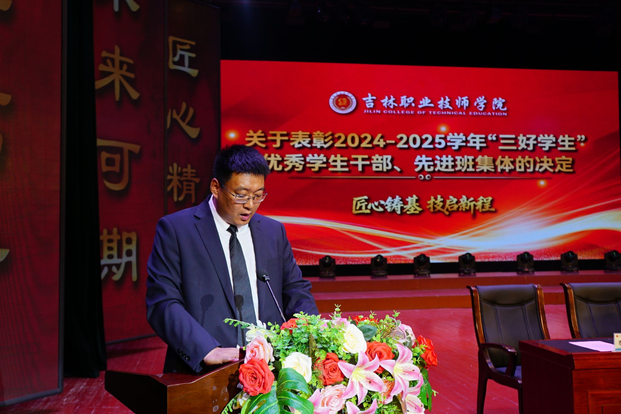 王东红书记宣读《关于表彰2024-2025学年“三好学生”、优秀学生干部、先进班集体的决定》