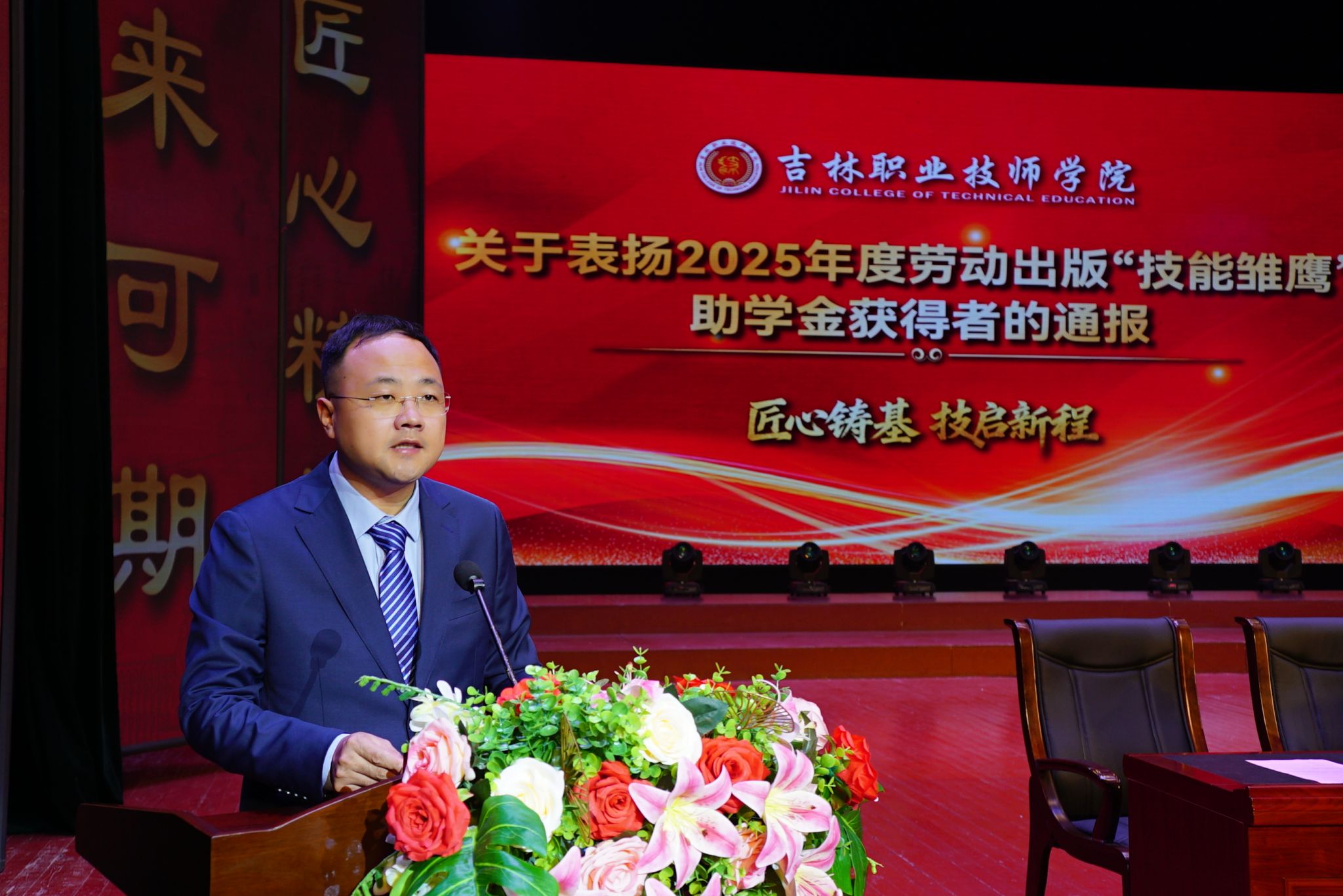 副院长刘洋宣读《关于表扬2025年度劳动出版“技能雏鹰”助学金获得者名单》