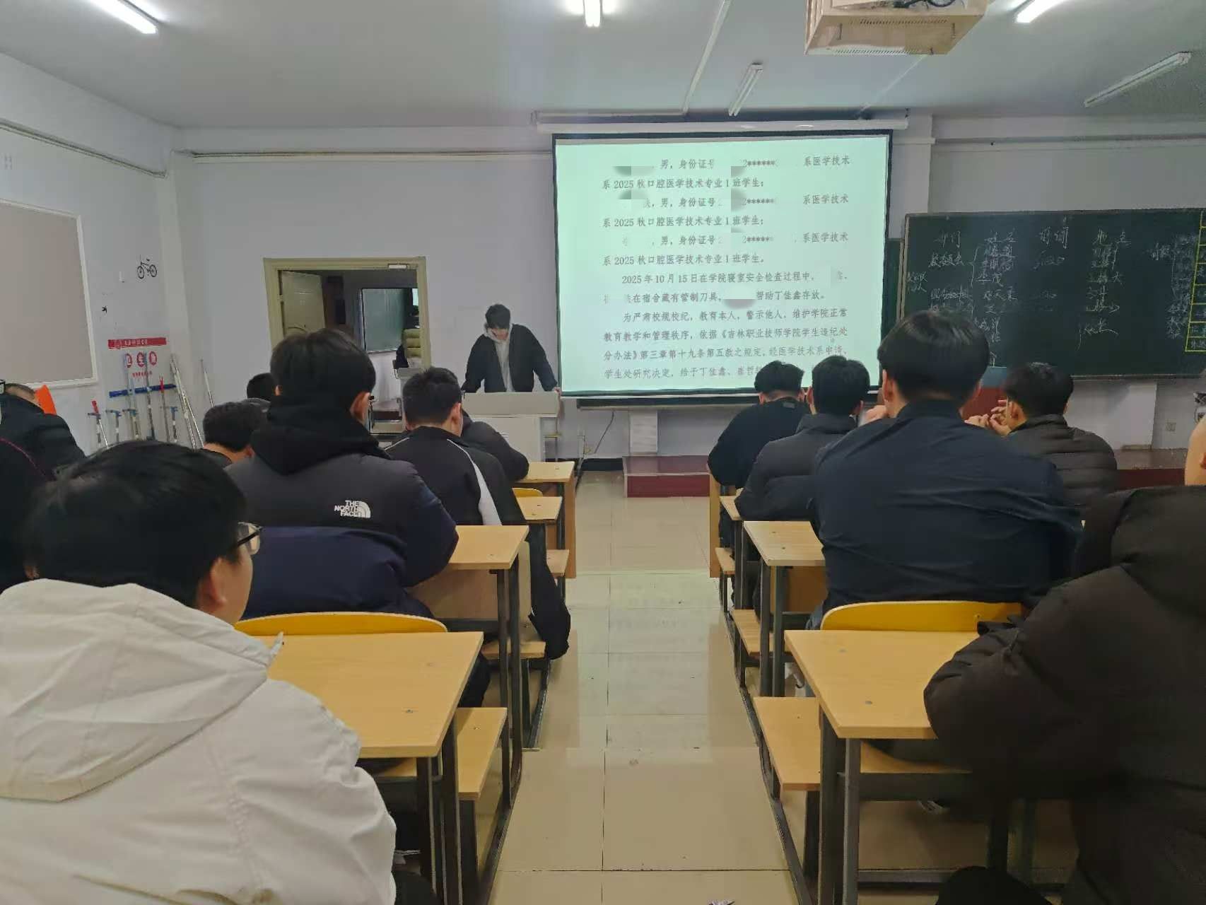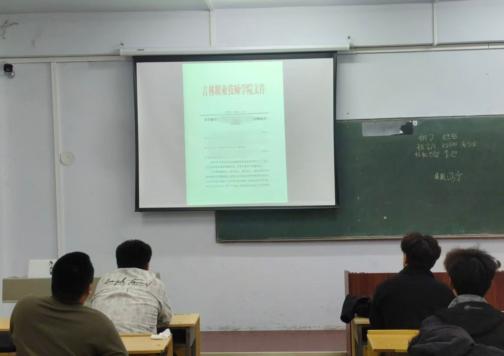 各班级辅导员首先向全体学生通报了本次 3 名学生私藏管制刀具事件的基本情况。据了解,该事件由安全巡查小组在日常宿舍安全检查中发现,涉事刀具虽未造成实际安全事故,但已严重违反《吉林职业技师学院学生管理规定》中关于 “严禁学生携带、私藏管制刀具及危险物品” 的明确条款。辅导员在通报中强调,学院始终将校园安全置于教育教学工作的首要位置,私藏管制刀具不仅是对自身及他人生命安全的漠视,更是对校园正常秩序的严重破坏,此次事件必须严肃处理,以儆效尤。