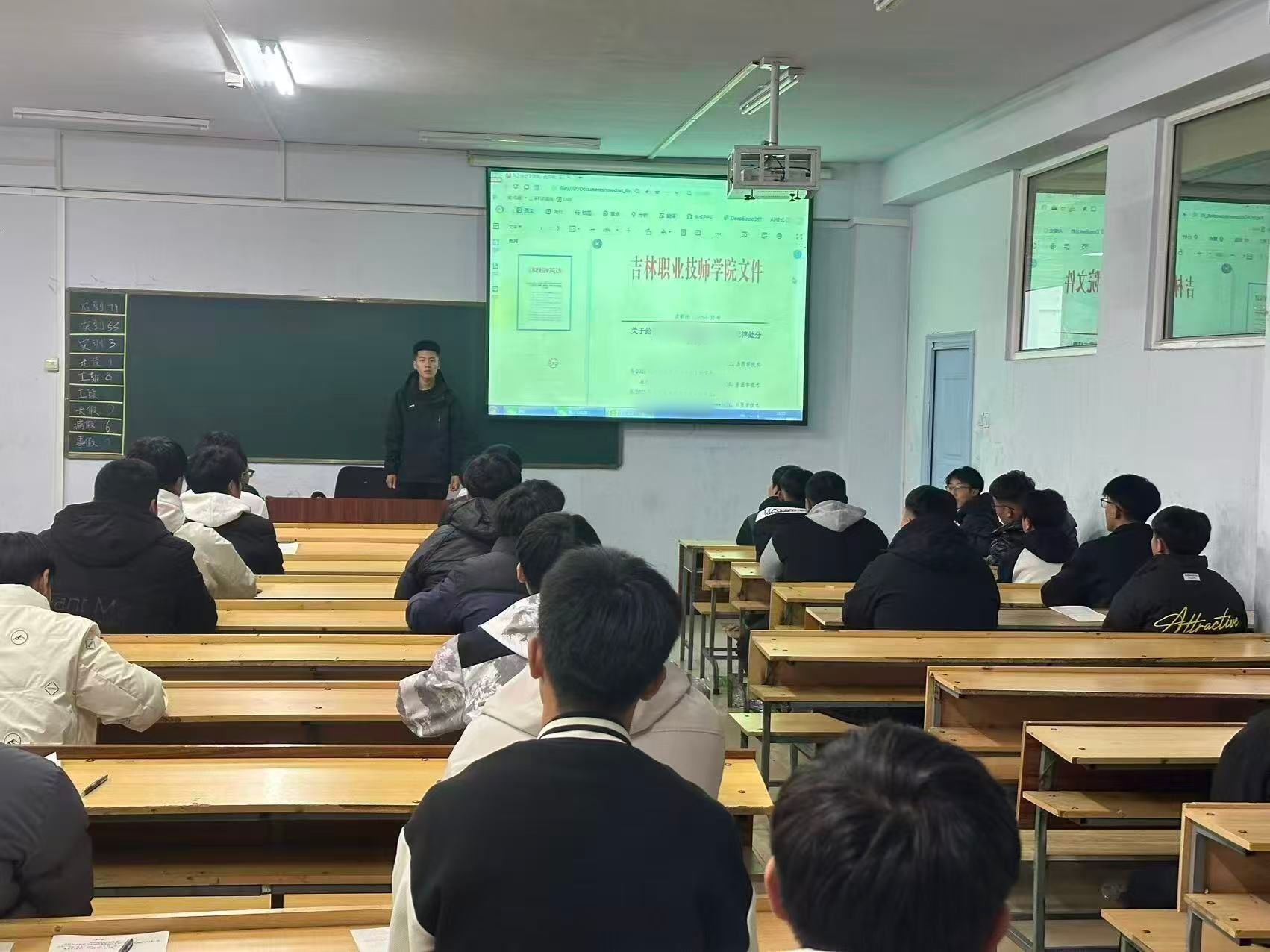 为严肃校规校纪,切实加强学生安全管理教育,有效防范校园安全风险,近日,吉林职业技师学院智能技术系针对其他班级出现的 3 名学生私藏管制刀具问题,迅速组织全系各班级开展 “杜绝管制刀具,共建平安校园” 专项主题班会,旨在通过事件警示、法规学习、思想引导,教育涉事学生、警示全体同学,维护学院正常教育教学与管理秩序。